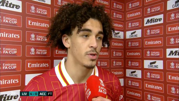 英格兰足总杯第三轮比赛中,利物浦青年军在安菲尔德球场主场迎战来自非职业联赛的阿克灵顿队。备受关注的杰登-丹斯,在长达五个月的伤病后重返球场,并在比赛中打进了他职业生涯中的又一个进球。赛后,他接受了英国独立电视台的采访。